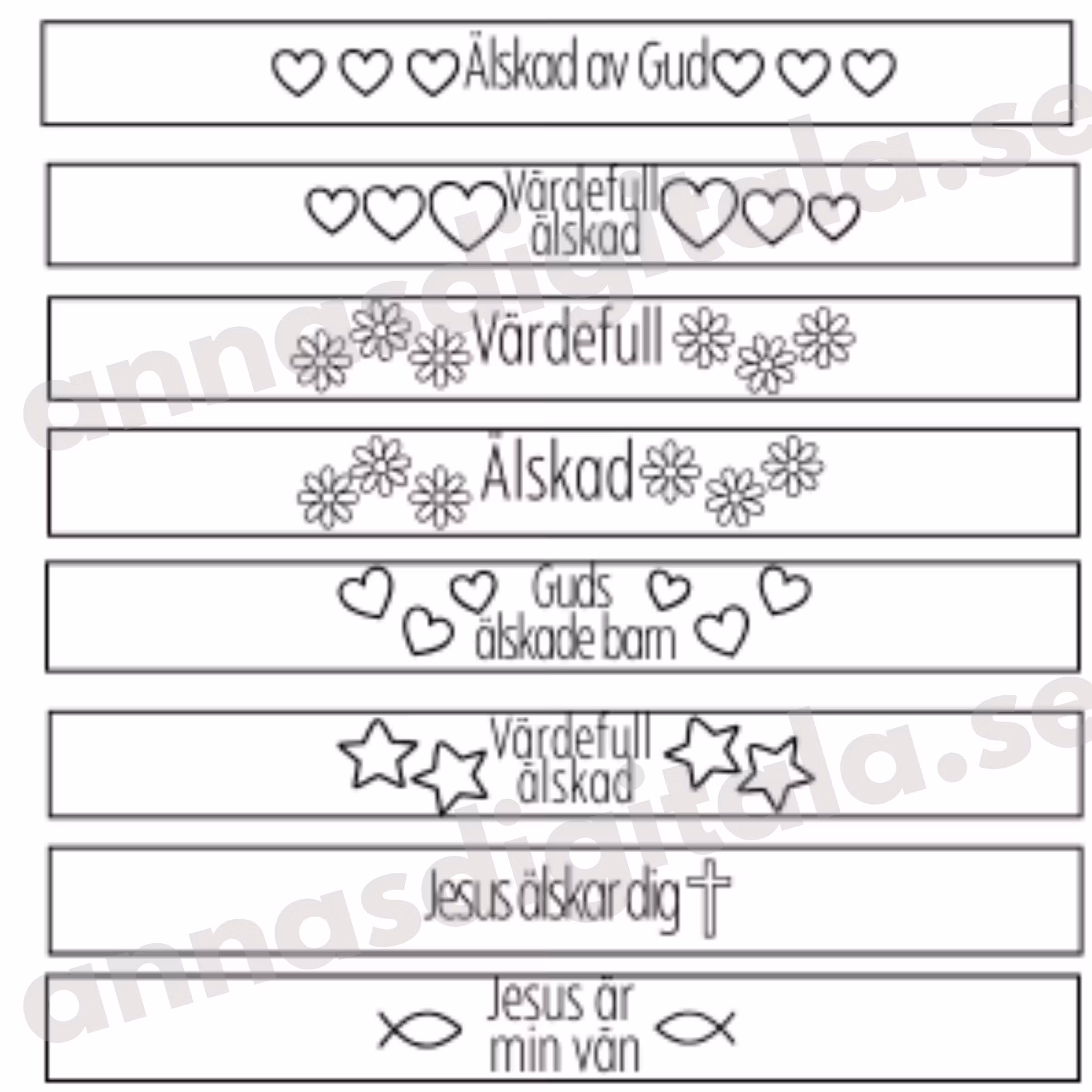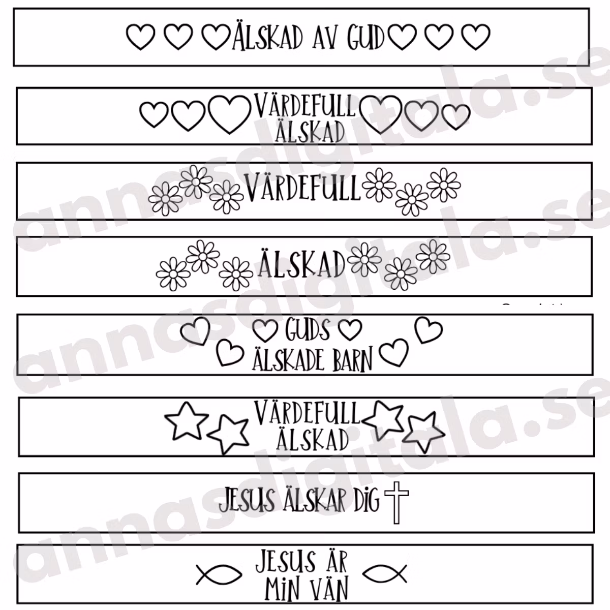 Pappersarmband 25 kr Lägg i korgen Produktbeskrivning Recensioner Enkla och fina utskrivbara pappersarmband. Färglägg gärna 🖌️Köp, ladda ner, skriv ut och kopiera det antal du behöver för din församlingsgrupp.