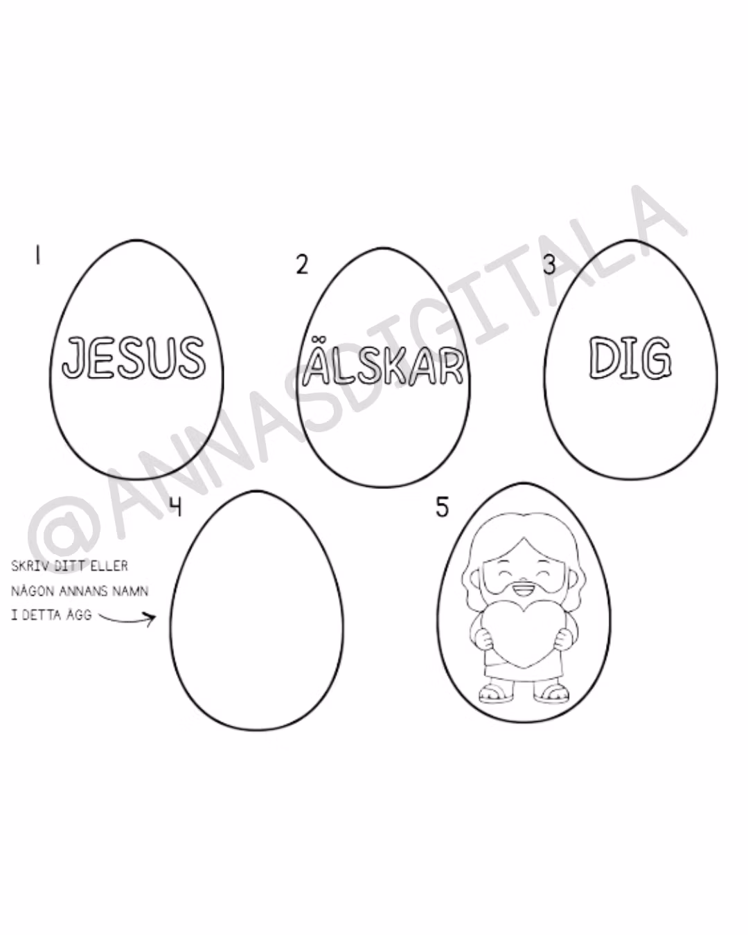 Påskägg - Jesus älskar dig 25 kr Lägg i korgen Produktbeskrivning Recensioner Utskrivbart påskpyssel - Skapa påskägg med viktigt budskap!
