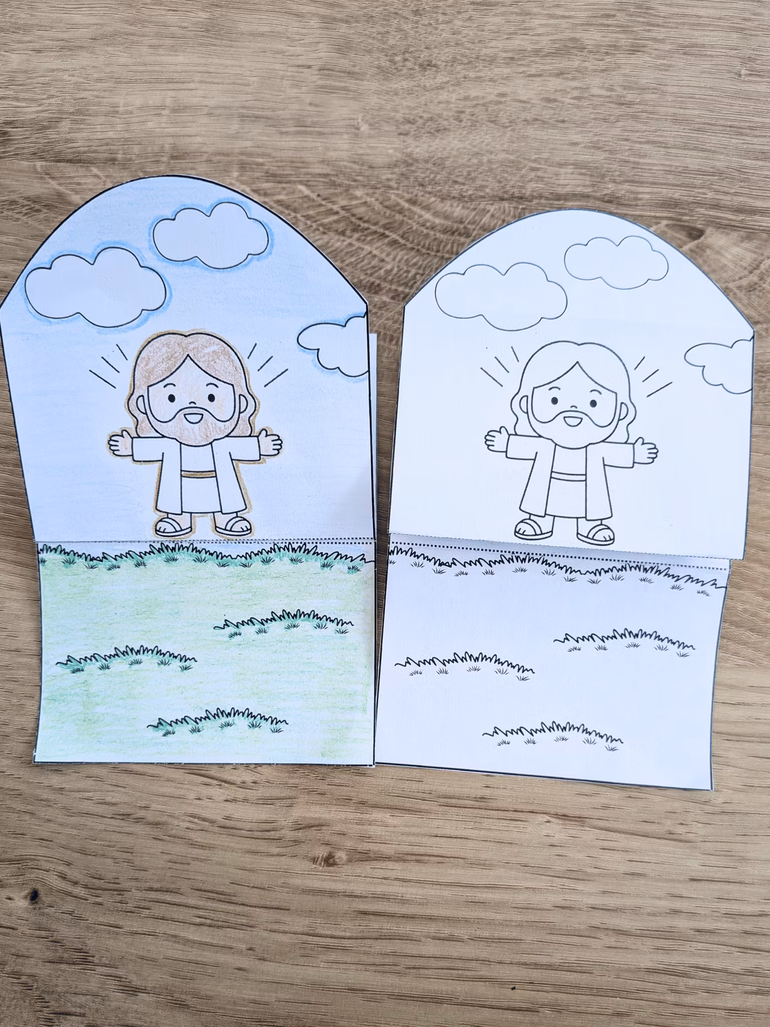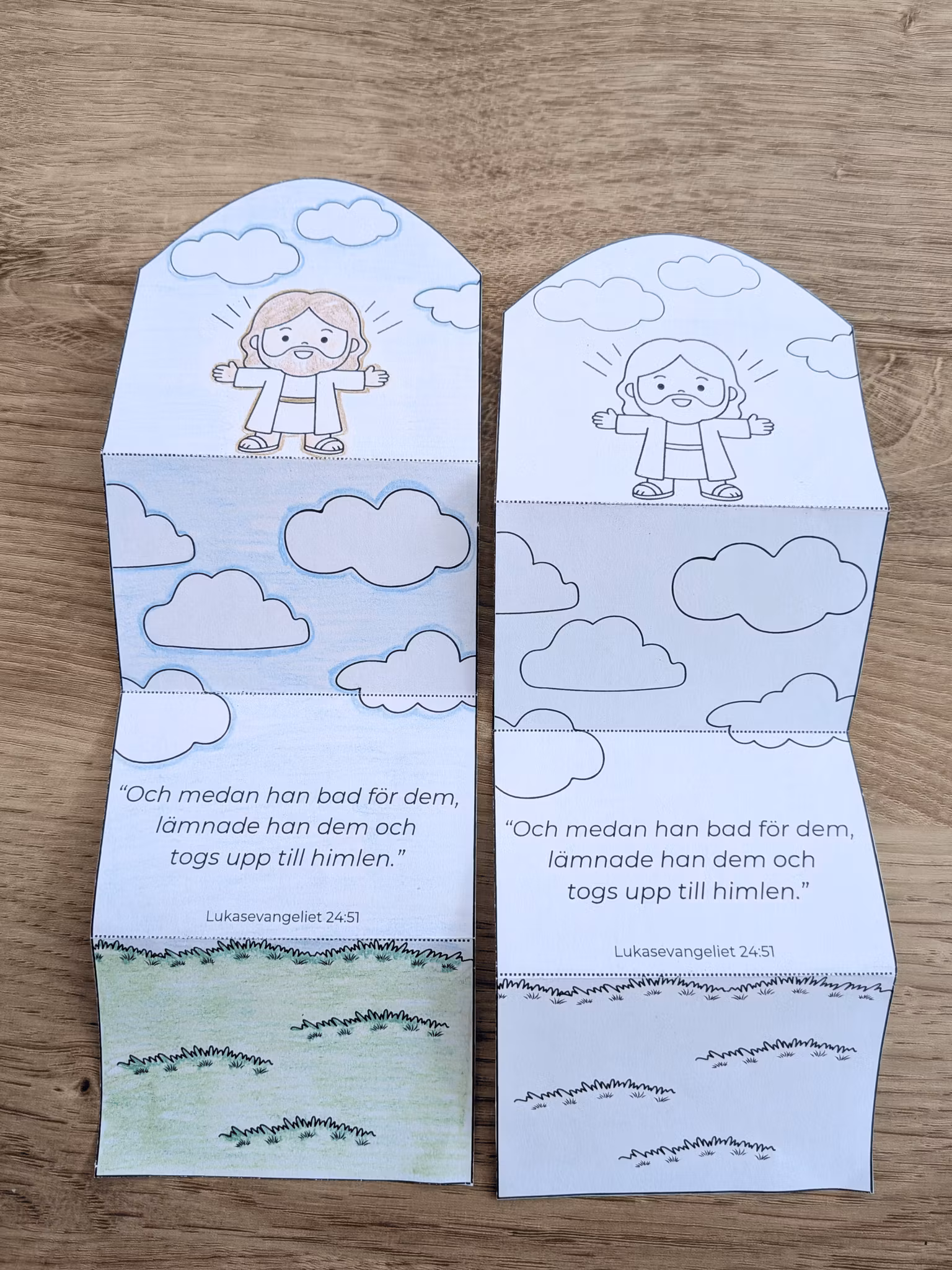 Vikbart kort som visualiserar Jesus himmelsfärd. Ett enkelt pyssel som passar alla.