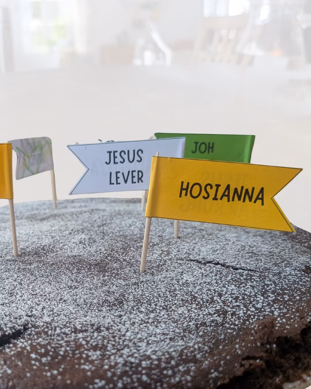 Vimplar "Halleluja" 10 kr Lägg i korgen Produktbeskrivning Recensioner Utskrivbara vimplar.Kan skrivas ut på färgat papper eller färgläggas.Dekorera påsktårta med vimplar.